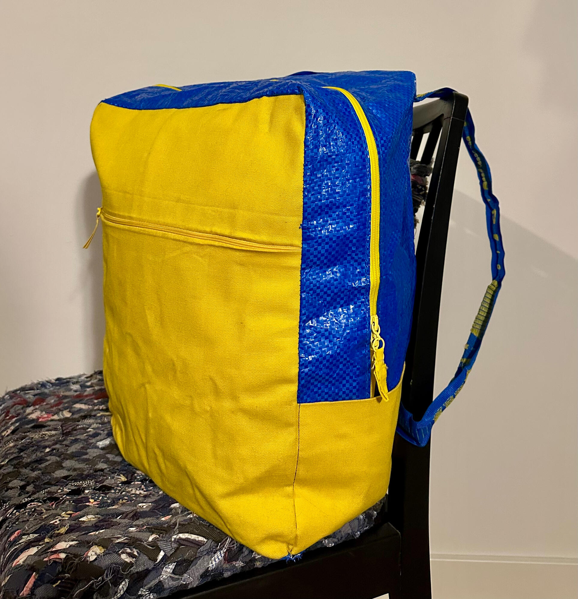 Made from 1x yellow IKEA pillow and 1x blue IKEA shopping bag. $20